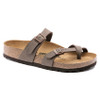 The BIRKENSTOCK Mayari thong sandal is a jaunty model with a toe loop. The impressive combination of design and wearability will see fashion-conscious men and women through the day with elegance and comfort. The upper is made from the skin-friendly, hard-wearing synthetic material Birko-Flor® in a sophisticated nubuck look which boasts a texture and color that could almost be mistaken for real leather.