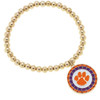 For a bold and stylish look, this Clemson Tigers Pave Disc Ball Bead Stretch Bracelet in Shiny Gold is a must-have. Featuring a pave disc with the Tigers logo and shiny gold ball beads, this bracelet is a sophisticated way to wear your team pride.
