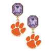 Canvas Clemson Tigers Rhinestone Enamel Logo Earrings in Shiny Gold