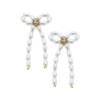 Canvas Kristin Pearl Beaded Bow Earrings in Ivory