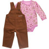 Carhartt Infant Girls Long-Sleeve Floral Bodysuit and Canvas Overall Set