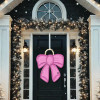 DK Large Pink Bow is a UV Printed Door hanger measuring 22" tall that is perfect for indoor or outdoor use. All original designs are printed on a moisture resistant high quality 1/4" board and sealed for additional protection with 2 coats of a gloss finish. DK hangers come with a fully wired beaded handle. All products are designed, and manufactured in Forsyth, Georgia.