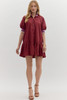 Entro Burgundy Puff Sleeve Ruffle Hem Mini Dress