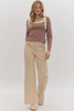 Entro Mocha Women's Sweater Knit Top with Ribbons