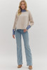 Solid long sleeve knit pullover top featuring contrast ribbed turtleneck and extended ribbed cuffs. Unlined. Knit. Non-sheer. Lightweight.