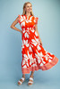 Floral Print Puff Sleeve Midi Shirt Dress with a Smocked Waist and Seaming Details. The Dress is Lined
