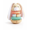 A cute bunny stacking toy made up of a sturdy beech wood base, three colourful stacking rings and a fluffy bunny head