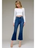 Hidden Jeans Women's Medium Wash Frayed Hem Cargo Crop Flare