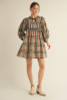 Jodifl Tie Neck Detail Plaid Babydoll Dress