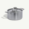 The 5-ply construction cleans up in seconds, because it prevents the hot spots that lead to stuck-on messes. Two looped handles and an angled rim make transport and pouring simple, while a tight-fitting lid traps steam to accelerate your boil and lock in flavor.