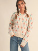 &merci Women's Floral Knit Collared Sweater Cardigan