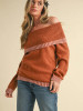 + Contrast ribbed knit neckline, cuffs, and hem