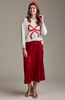 Poly satin midi skirt features full pleating with elastic waist. Measures approximately 32" from waist to hem on size small.…