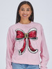 Tutu pink long sleeve crew with a santa suit themed bow and twinkling white stars. 60% cotton/40% polyester blend. Range si…