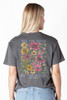 Made from 100% heavyweight cotton, this short sleeve mineral washed tee delivers structure and comfort. This graphite tee features an assortment of flowers and the phrase 'See the Good, Be the Good'.