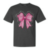 Grace in Every Thread. Simple, soft, and full of meaning. This pepper t-shirt features a sweet pink bow surrounde…