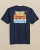 Celebrate beach life with a comfortable t-shirt in striking colors. A small orange Southern Tide Skipjack adorns the front chest, while a back graphic frames sunset colors between palm tree silhouettes.