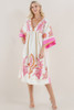 Sundayup Hot Pink Contrast Long Sleeve V-Neck Embroidered Dress