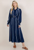 Sundayup Navy Solid Long Sleeve Belted Shirt Dress