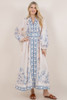 Sundayup Women's Printed Long Sleeve V-neck Maxi Dress