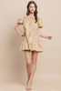 Puff sleeve dress with tiered front. Featuring bow detail and a concealed back zipper