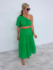 Oh la la! We are absolutely in love with this on-trend dress! Made from a stunning woven fabric in a gorgeous shade of green, this dress features an elasticized single-shoulder neckline with a short sleeve. The ultra-flattering elasticized waistline is highlighted by pink and orange stripes, leading to a chic tiered midi-length silhouette. The dress is lined through the seat for added comfort. We can't get enough of the unique details that make this piece truly special! The model is 5'8" and wearing a size small.