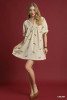 Umgee Corduroy Babydoll Dress with Floral Embroidery
