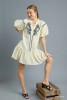 • Split neckline• Abstract Embroidery• Puff short sleeves• Relaxed babydoll silhouette• Tiered…